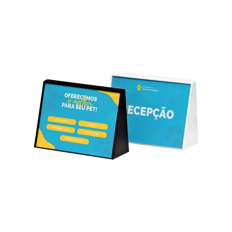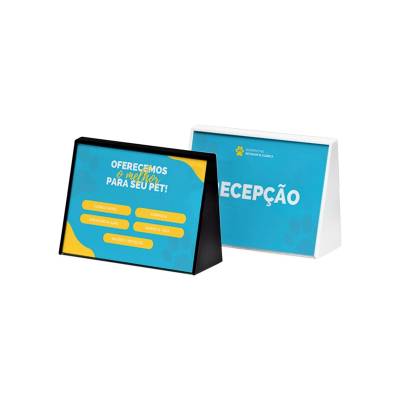 Porta retrato A6 personalizado em poliestireno com placa acrílica. Possui compartimento para foto 10,5 x 14,8 cm. Ideal para divulgar sua empresa em eventos corporativos, brindes personalizados e campanhas promocionais.
