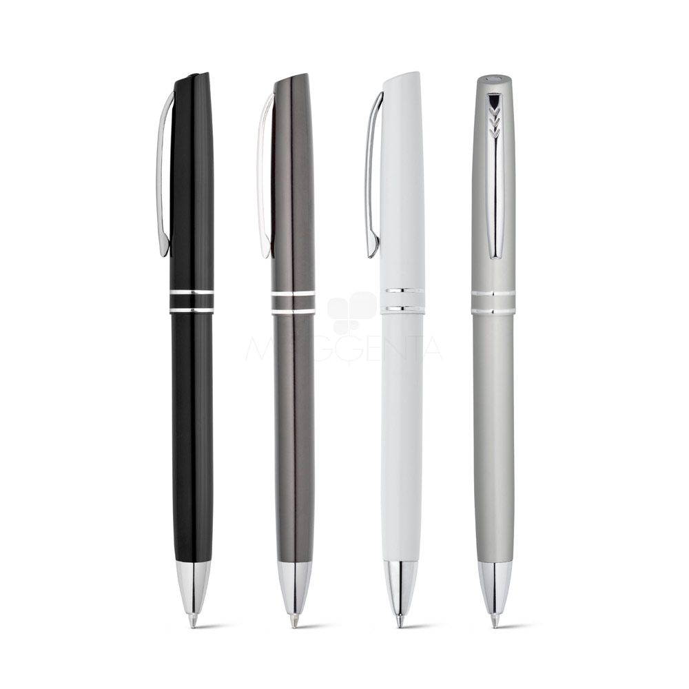 Caneta confeccionada em alumínio para dar de brinde. Possui ponteira esferográfica com 1,5km de escrita na cor preta.