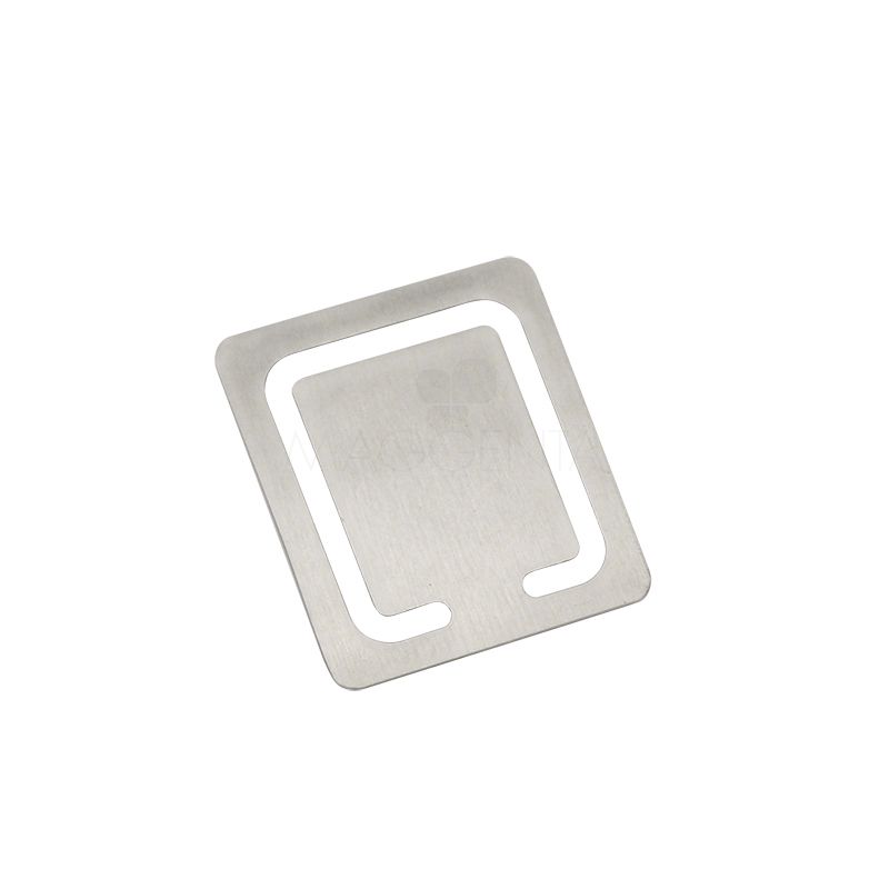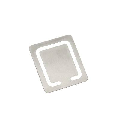Marcador de página em metal para brindes personalizados. Formato retangular. Gravação em Laser
