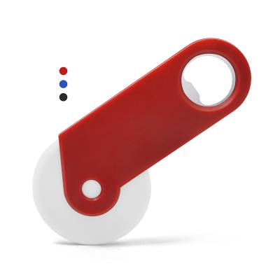 Qualidade e praticidade em suas refeições! Cortador de pizza promocional com design moderno. Confeccionado em material plástico, possui abridor de garrafa em aço inoxidável no lado oposto. Disponível em três opções de cores. Utensílio perfeito para deixar sua cozinha completa.