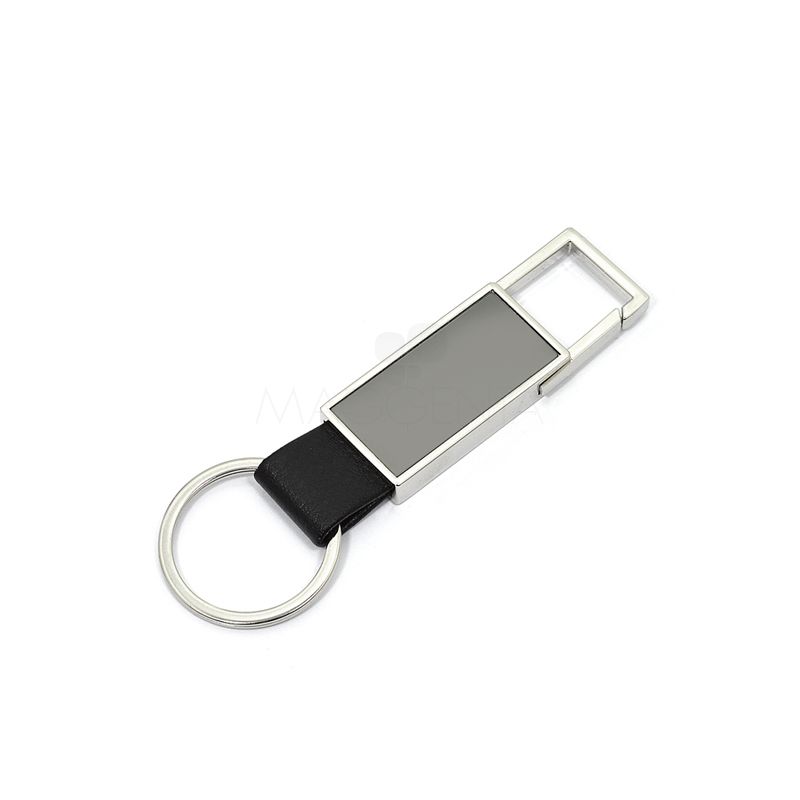 Confeccionado em metal com placa central diferenciada e detalhe em couro sintético. Possui argola para chaves e um mosquete de encaixe rápido.