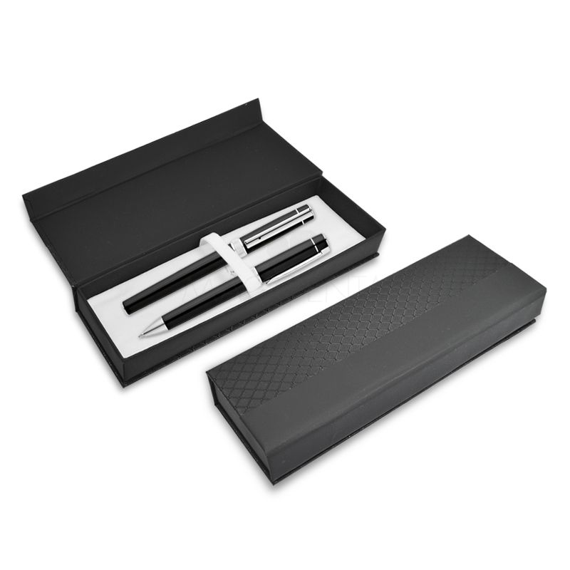 Estojo personalizado para duas canetas, possui acabamento texturizado e interior almofadado em veludo branco. *Obs.:Canetas não inclusas ao produto.