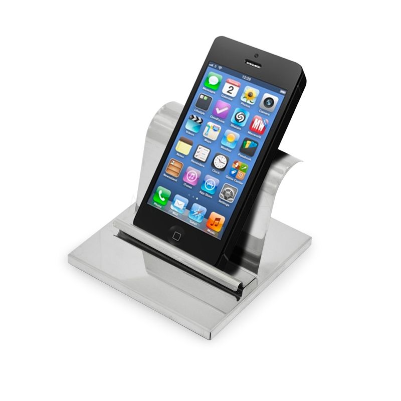Produzido em metal com design diferenciado, possui base inferior antiderrapante para melhor fixação e apoio ao deixar seu celular na base.