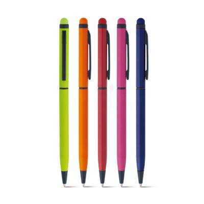 Caneta de metal personalizada com escrita macia e confortável, possui ponteira touch para uso em tablets e smartphone.