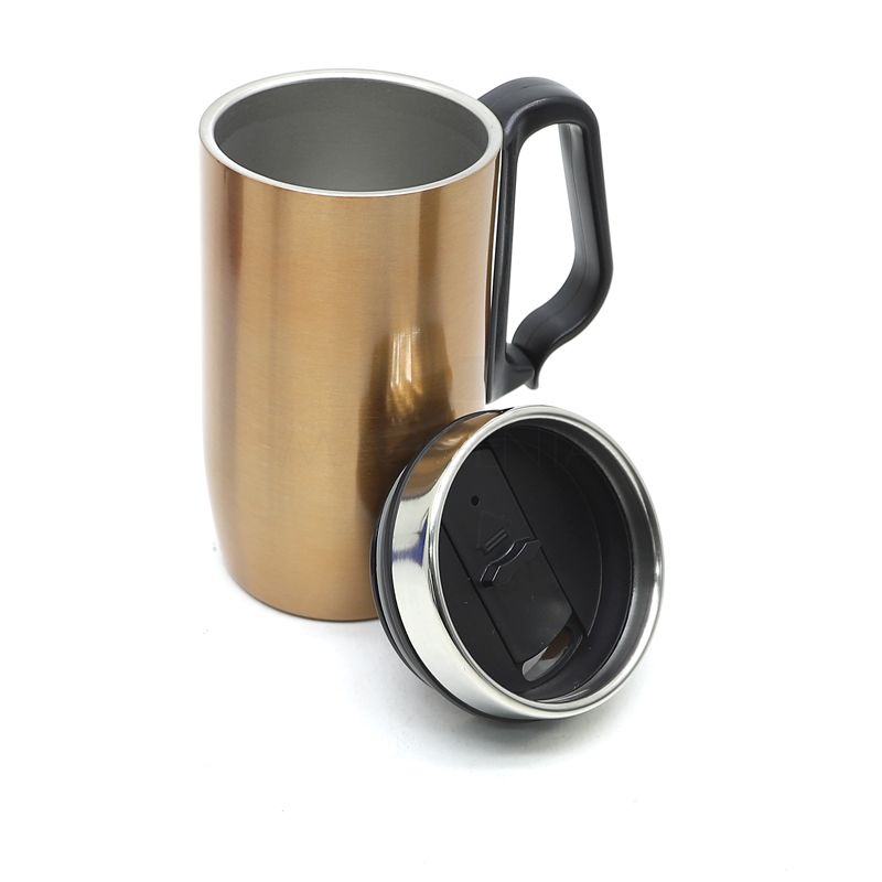 Caneca Térmica de metal personalizada com parede dupla que conserva a temperatura da bebida por mais tempo, possui capacidade para 275ml, alça plástica com abertura inferior, tampa com abertura principal com proteção retrátil, anel de vedação e base em E.V.A . Ideal para divulgar sua empresa em eventos corporativos, brindes personalizados e campanhas promocionais.