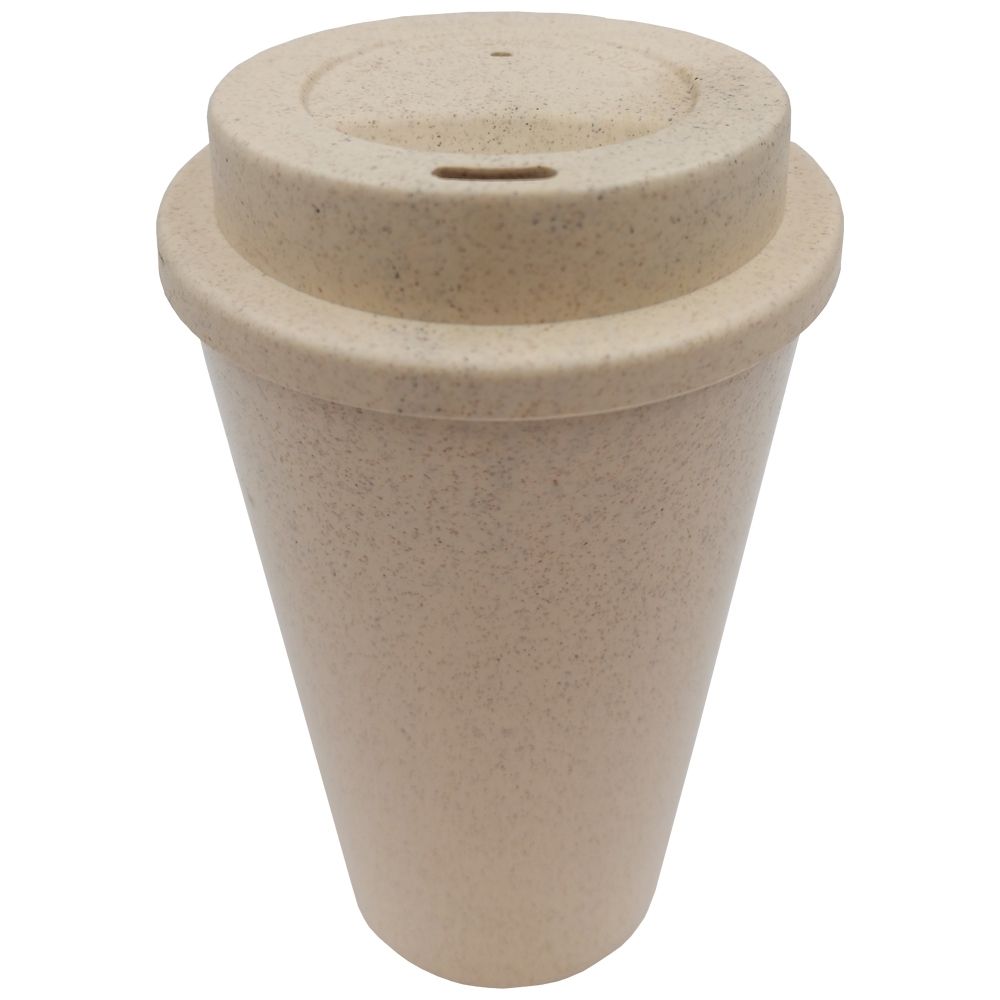 Copo de plástico com fibra de trigo. Possui capacidade para 450ml e tampa rosqueavel com orifício para saída da bebida. Ideal para divulgar sua empresa em eventos corporativos, brindes personalizados e campanhas com apelo sustentável ao meio ambiente.
