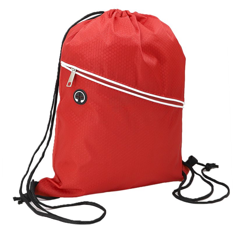 Mochila saco personalizada produzida em fibra de poliéster resistente à água. Contém bolso diagonal na parte frontal com entrada para fones de ouvido e alças de nylon. Ideal para brindes promocionais e eventos corporativos. Obs: Fone de ouvido não acompanha o produto.