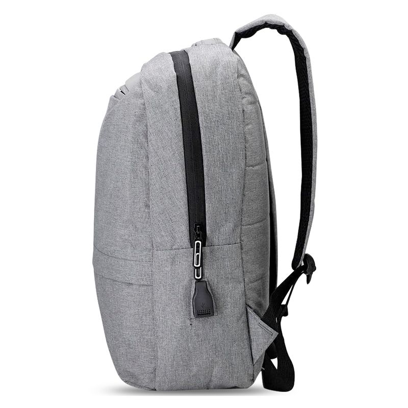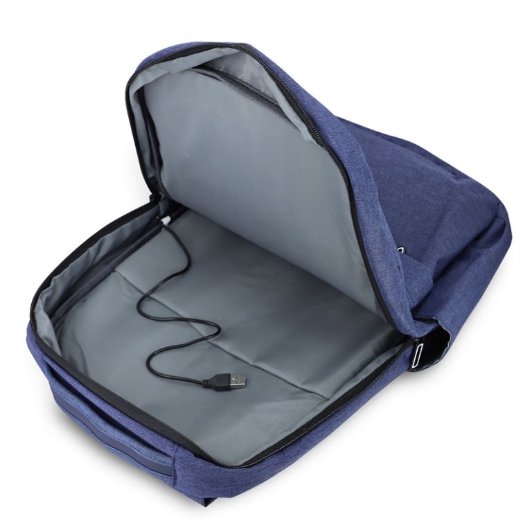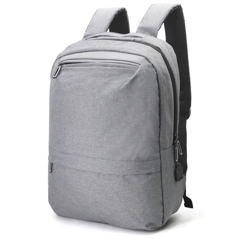 Mochila para notebook personalizada produzida em nylon. Possui bolso principal com compartimento para notebook de 14 polegadas, alça e detalhe frontal em material sintético, dois bolsos frontais ambos com fechamento por zíper, bolso lateral, adaptador USB externo com cabo acoplado permitindo a conexão de um carregador portátil (Power Bank não acompanha o produto.) de dentro da mochila para transferência da carga para o lado externo, alças de costas ajustáveis com acabamento almofadado e zíperes de metal diferenciados com pintura personalizada. Ideal para brindes promocionais e eventos corporativos. Obs: Para a entrada lateral USB funcionar como carregador, é necessário a aquisição de um de nossos Power Banks.