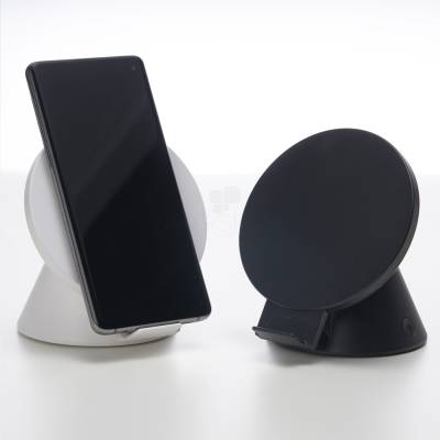 Caixinha de Som bluetooth com carregador wireless. Produzido em material plástico, a caixinha possui antiderrapantes emborrachados na parte inferior, ao ser inclinado o produto também pode ser utilizado como suporte para o celular. Para desfrutar do carregamento por indução (sem fio) é fundamental que o celular possua a tecnologia QI – desta maneira é possível carregar o celular posicionando-o sob carregador, sendo necessário apenas conectar o carregador à uma fonte de energia (USB ou diretamente na tomada). Acompanha cabo USB Tipo-C. Ideal para brindes promocionais e eventos corporativos.