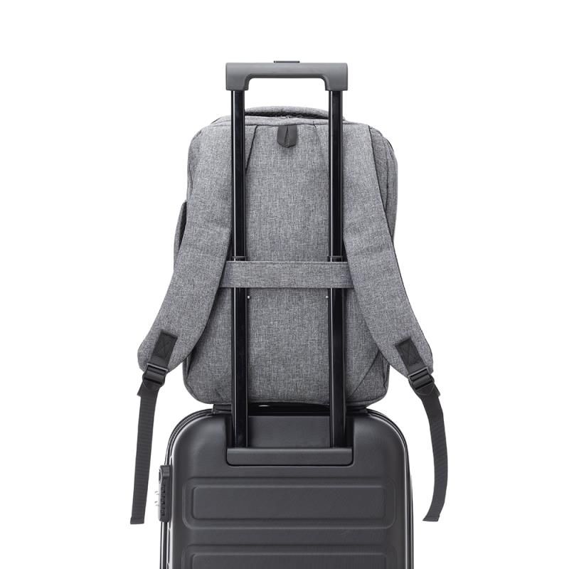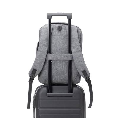 Mochila e Pasta para Notebook personalizada produzida em tecido poliéster. Possui parte externa com conector USB na lateral; 2 Bolsos frontais, alça de mão e ombro acolchoadas. Parte interna com compartimento para notebook de ate 16.5 Polegadas. Ideal para brindes promocionais e eventos corporativos. Imagem ilustrativa.