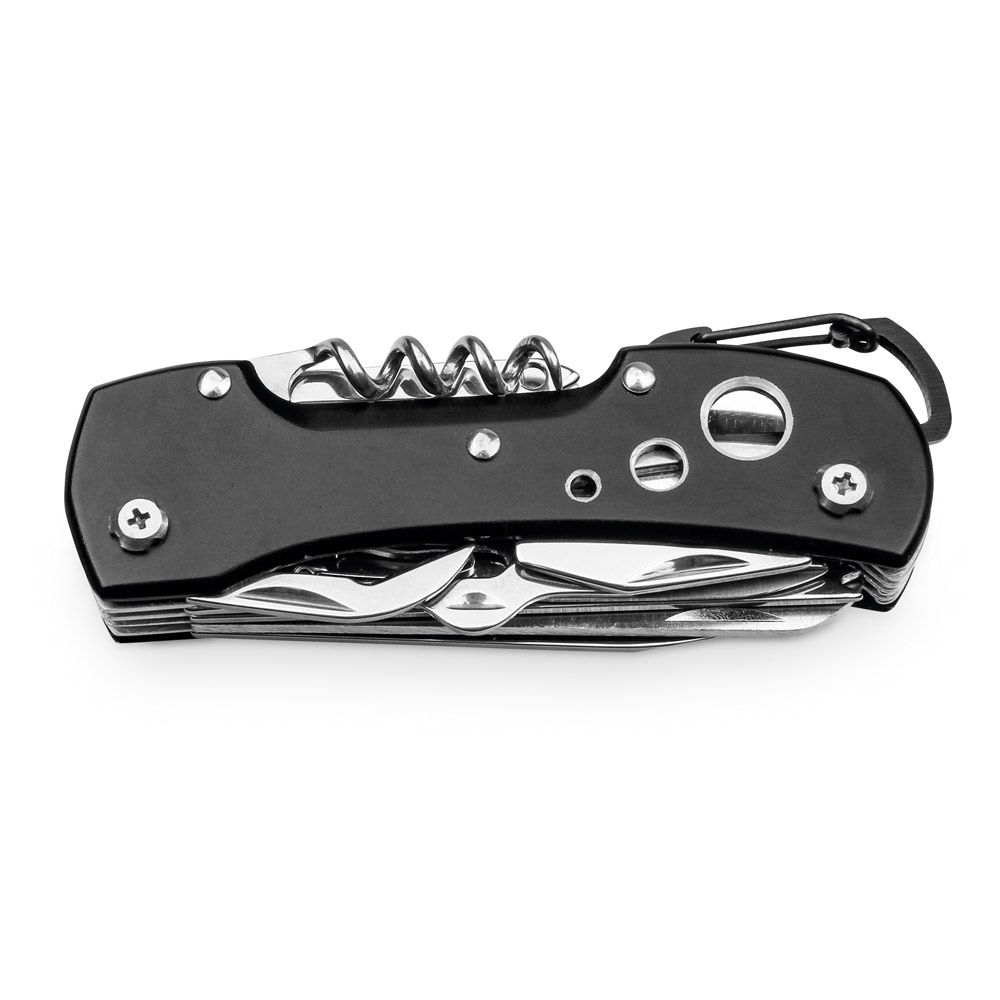 Canivete personalizado produzido em aço inox com 12 funções e mosquetão lateral. Faca serra, descamador de peixe com removedor de nós, tesoura, abridor de latas, abridor de garrafas com chave de fenda, mosquetão, chave Philips, furador, lixa de unha com limpador de unhas, agulha e saca rolhas. Quando for viajar, para se ter no seu carro, na sua caixa de ferramentas, para pesca, camping; esse canivete completo irá lhe tirar de qualquer? Perrengue?. é também o presente certo para se agradar alguém querido, pois não haverá erro!