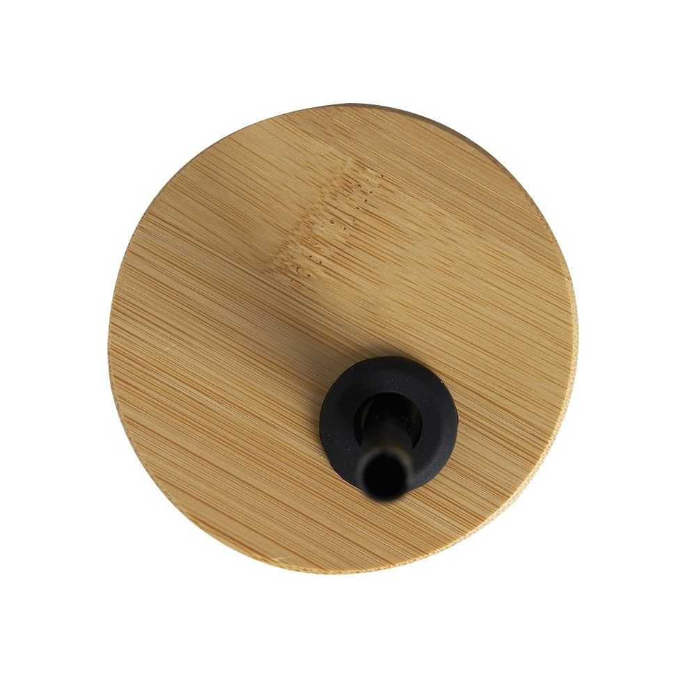 Copo de Vidro - Tampa de Bambu e Canudo