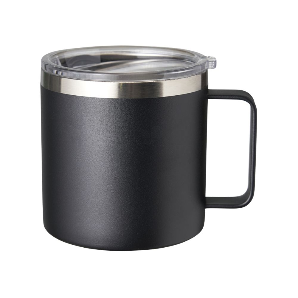 Caneca térmica de inox 450ml com parede dupla e tampa com acesso ao bocal.