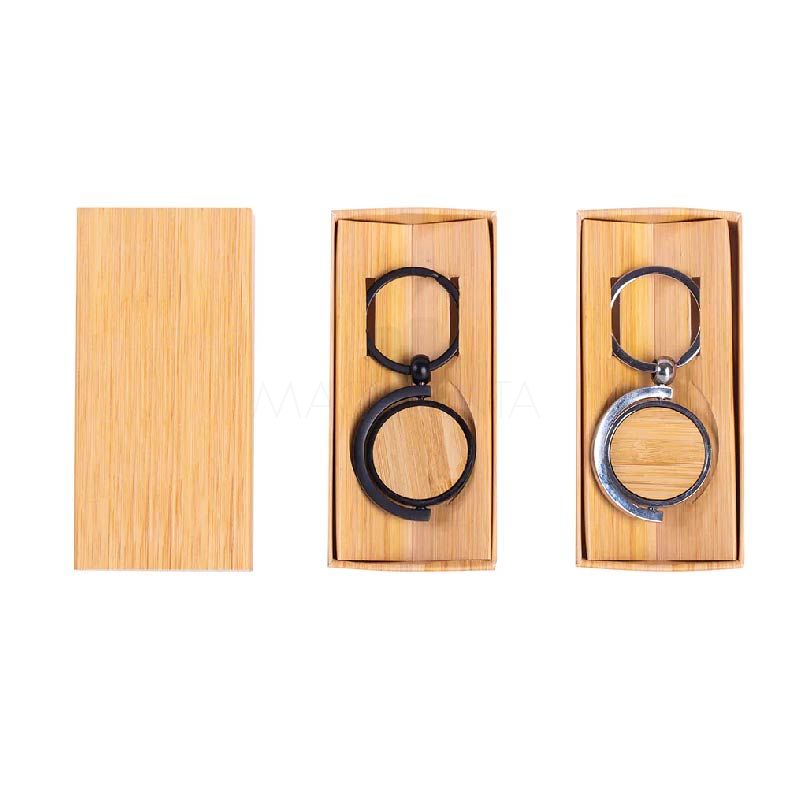 Chaveiro de metal com detalhe em bambu.