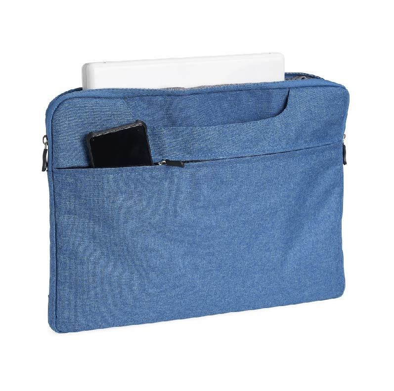 Pasta para notebook 15’6 em poliéster resistente à água com dois compartimentos, sendo o principal para notebook e o outro frontal. Contém interior forrado e almofadado, alça para encaixe em malas de viagem e acompanha alça transversal.