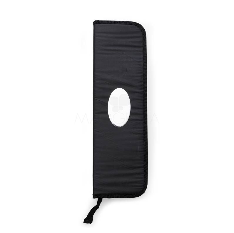 Kit churrasco 4 peças em estojo de nylon com alça. Possui: pegador, garfo, espátula e faca em inox, acompanha proteções plásticas e parte interna com velcro para guardar as peças.
