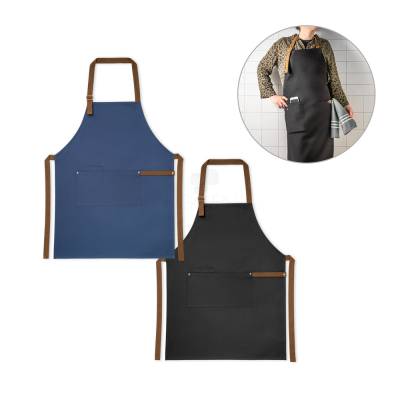 Avental em 100% algodão canvas (300 g/m²) com detalhes em metal. Com 3 bolsos multifuncionais e uma tira lateral (para suporte de um pano de cozinha). Tira do pescoço facilmente ajustável.