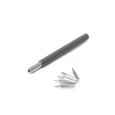 Kit ferramentas em plástico ABS com 24 pontas em aço inox, chave manual para encaixe e manuseio. Ideal para brindes promocionais e eventos corporativos. Imagem ilustrativa.