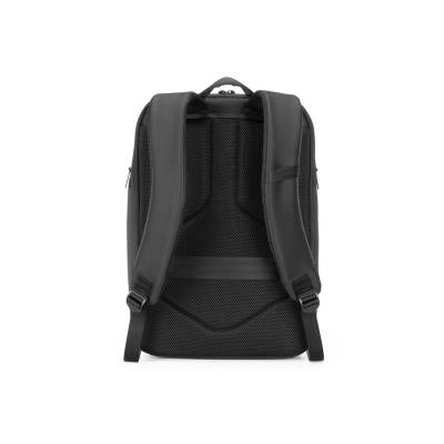Mochila personalizada, adequada para viagens de negócios, feito de tecido de poliéster, alças de ombro acolchoadas, aceita notebook de até 15,6”, porta USB na lateral, engate para mala de viagem, com dois bolsos nas laterais.