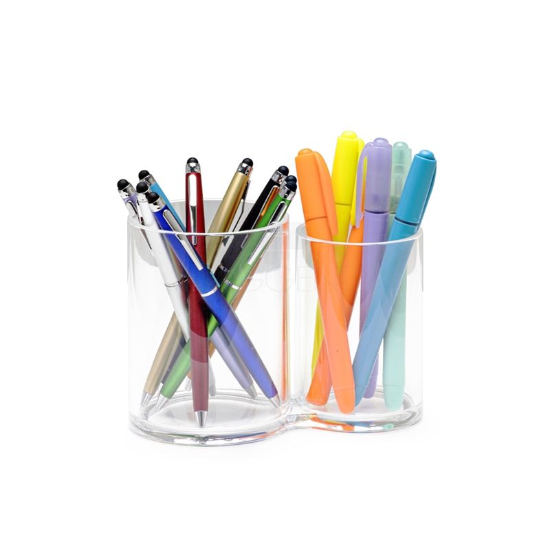 Porta caneta duplo personalizado produzido em acrílico translúcido. Possui dois compartimentos para canetas e objetos pequenos. Ideal para divulgar sua empresa em eventos corporativos, brindes personalizados e campanhas promocionais. *Imagem Ilustrativa, itens internos não acompanham o produto.