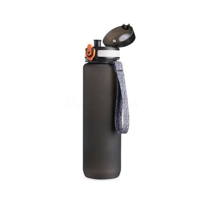 Squeeze plástica de 1 litro com tampa de acionamento automático e trava de segurança. Acompanha cordão de nylon.