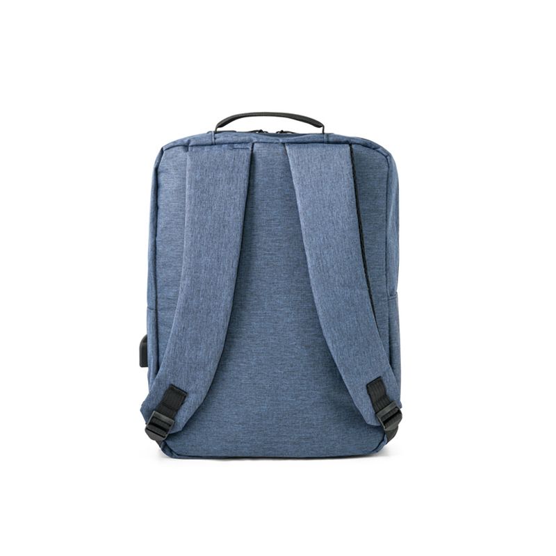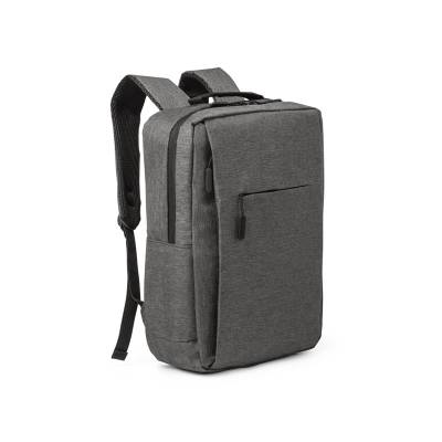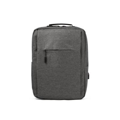 Mochila para notebook em 300D personalizada, possui um compartimento principal com bolso forrado para computador até 15,6" e diversos bolsos interiores. Contém ainda bolso frontal, bolso lateral e entrada USB. Parte posterior e alças são almofadadas.