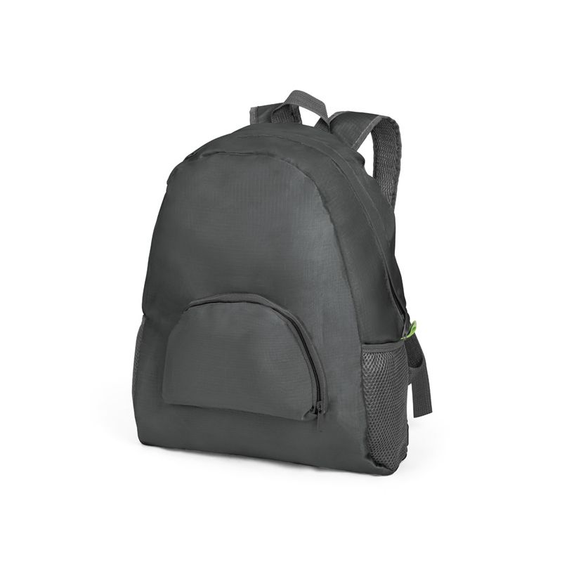 Mochila dobrável personalizada produzida em nylon 210 ripstop, possui bolsos laterais de tela forrada, bolso frontal com fechamento em zíper, alça de mão e alça de ombro ajustáveis. Leve e confortável, após o uso basta dobrar e guardar, levando em consideração a material prima do produto juntamente com seu diferencial de ser um item dobrável é inevitável que o produto apresente aspecto de amassado. Ideal para brindes promocionais e eventos corporativos. Tamanho dobrada: 195 x 160 x 330