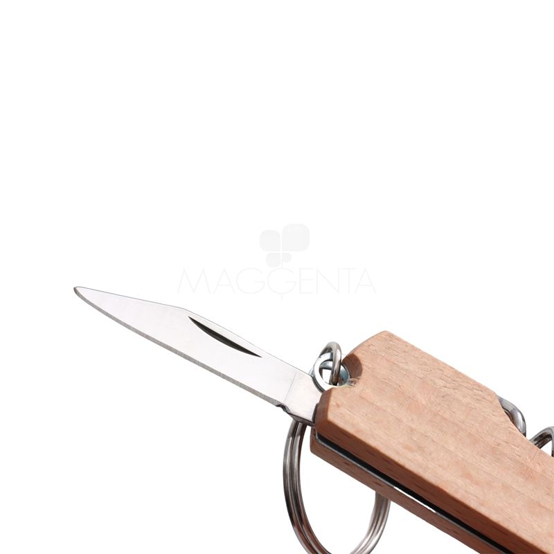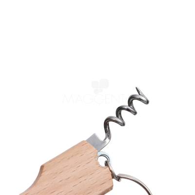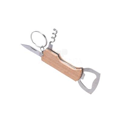 Chaveiro multifunções em madeira com abridor de garrafas, saca rolhas e lâmina de corte. Ideal para divulgar sua empresa em eventos corporativos, brindes personalizados e campanhas promocionais.
