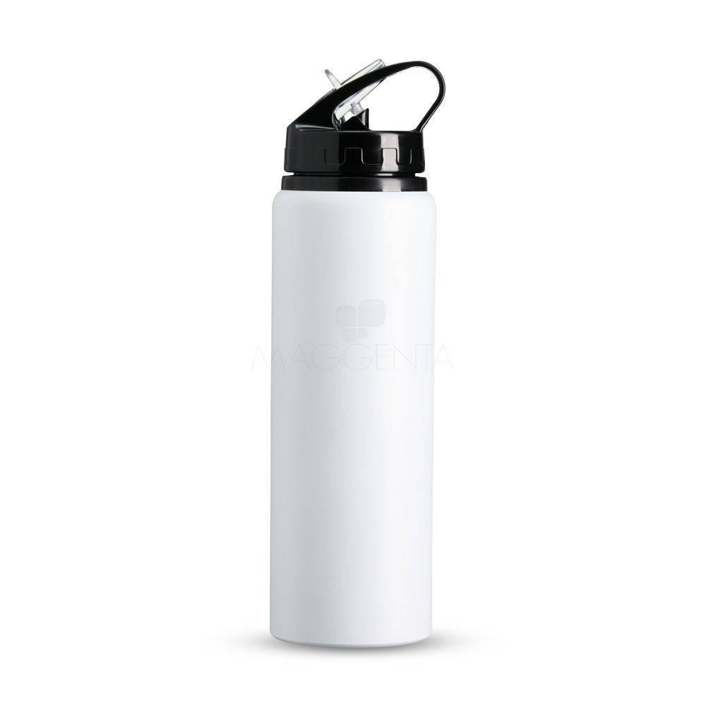 Squeeze de alumínio com capacidade de 800ml, tampa plástica com bico de canudo.