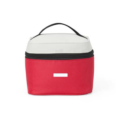 Bolsa térmica de nylon 4 litros. Possui bolso telado e acompanha plaquinha metálica.