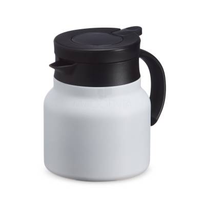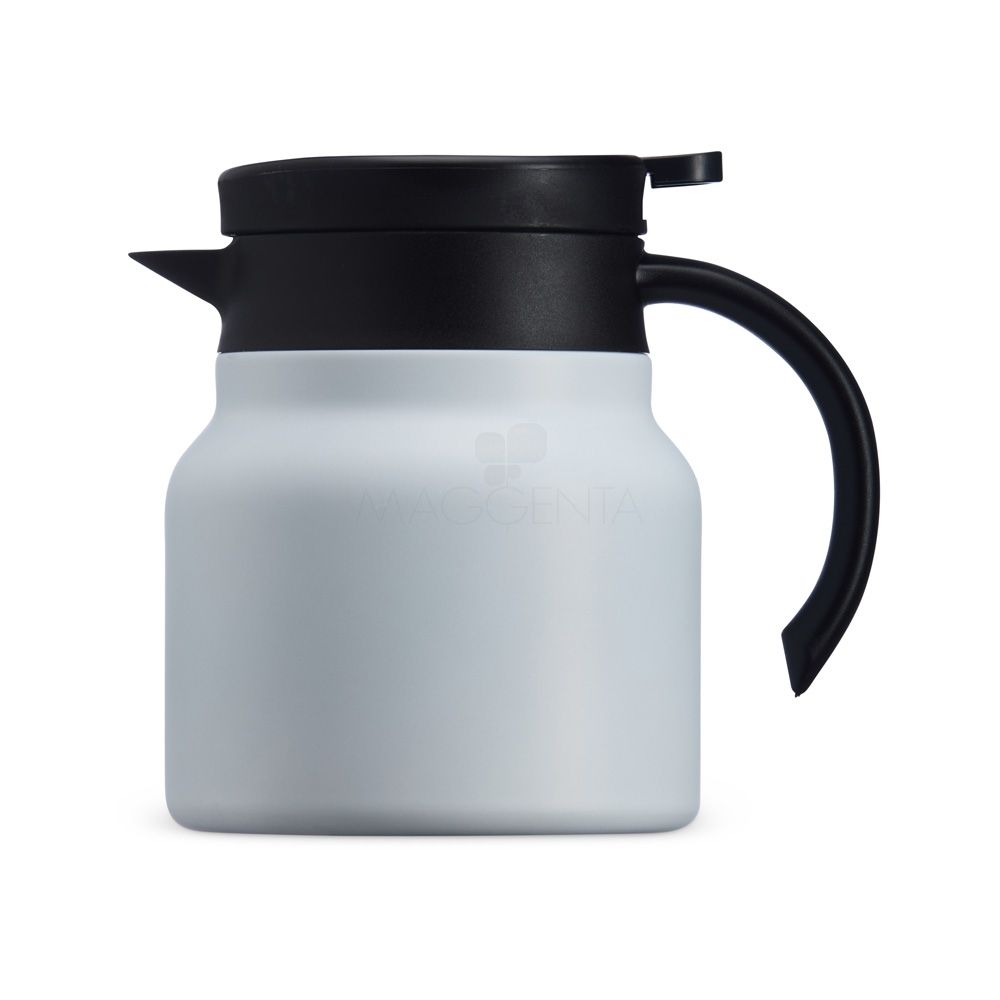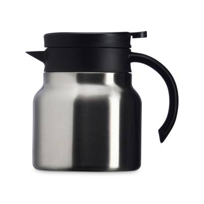 Chaleira térmica 750 ml em inox com infusor, display LED e termômetro digital na tampa para indicar a temperatura do líquido. Possui base antiderrapante, alça e tampa plástica com alavanca de acionamento.