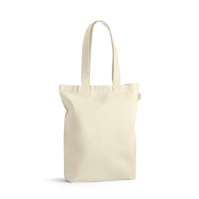 Sacola 100% algodão reciclado (220 g/m²) com alças de 65 cm.