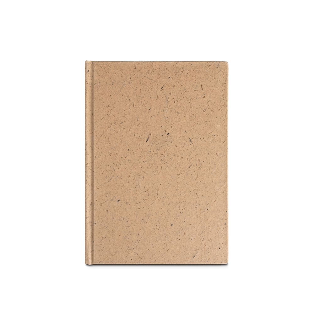 Caderno A5 de capa dura em casca de coco (60%) e pedaços de algodão reciclado (40%). O interior com 80 folhas pautadas de papel coco 100% reciclado. Um caderno que se distingue por dar uma segunda vida a materiais que podem ser reciclados.