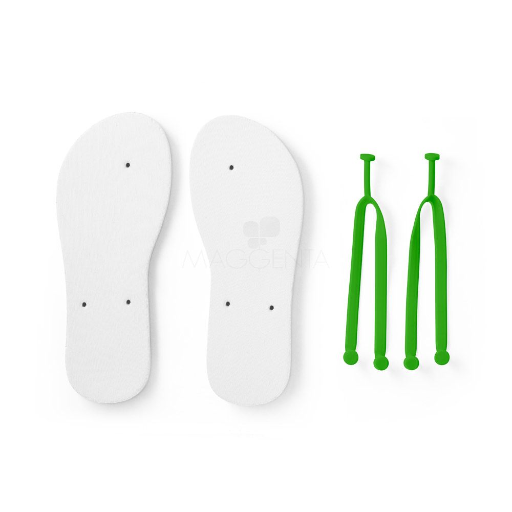 Chinelos confortáveis com sola em EVA e tira em PVC. A sola é totalmente personalizável em sublimação. Tamanhos disponíveis: G/GG (40 ao 43). Fornecidos em polybag. G/GG