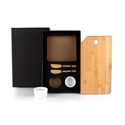 Kit Para Petisco Com Tábua, Espátulas e Ramekins - 5 Peças Promocional
