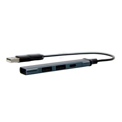 HUB em alumínio com 1 entrada USB, 1 USBC e saída com 3 USB e 1 USBC.
