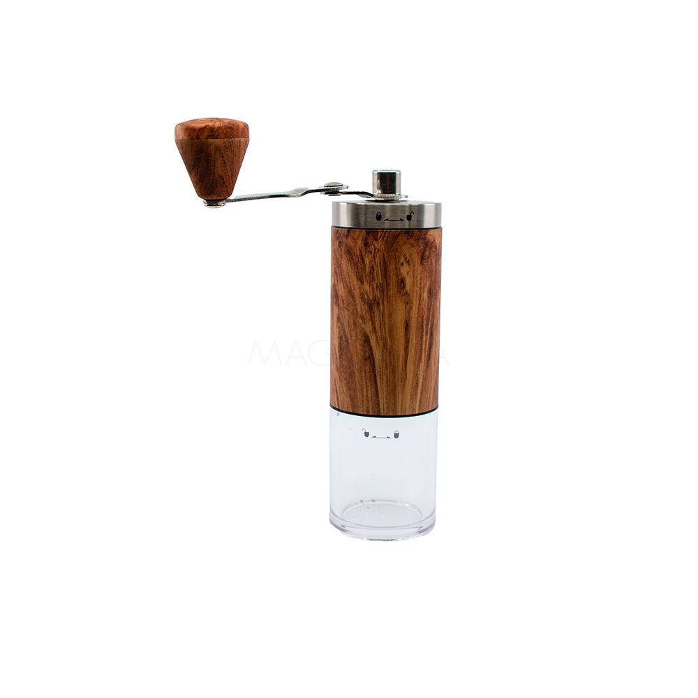 Moedor de Grãos de café manual em vidro, alumínio e madeira. Dimensão: 20x5cm