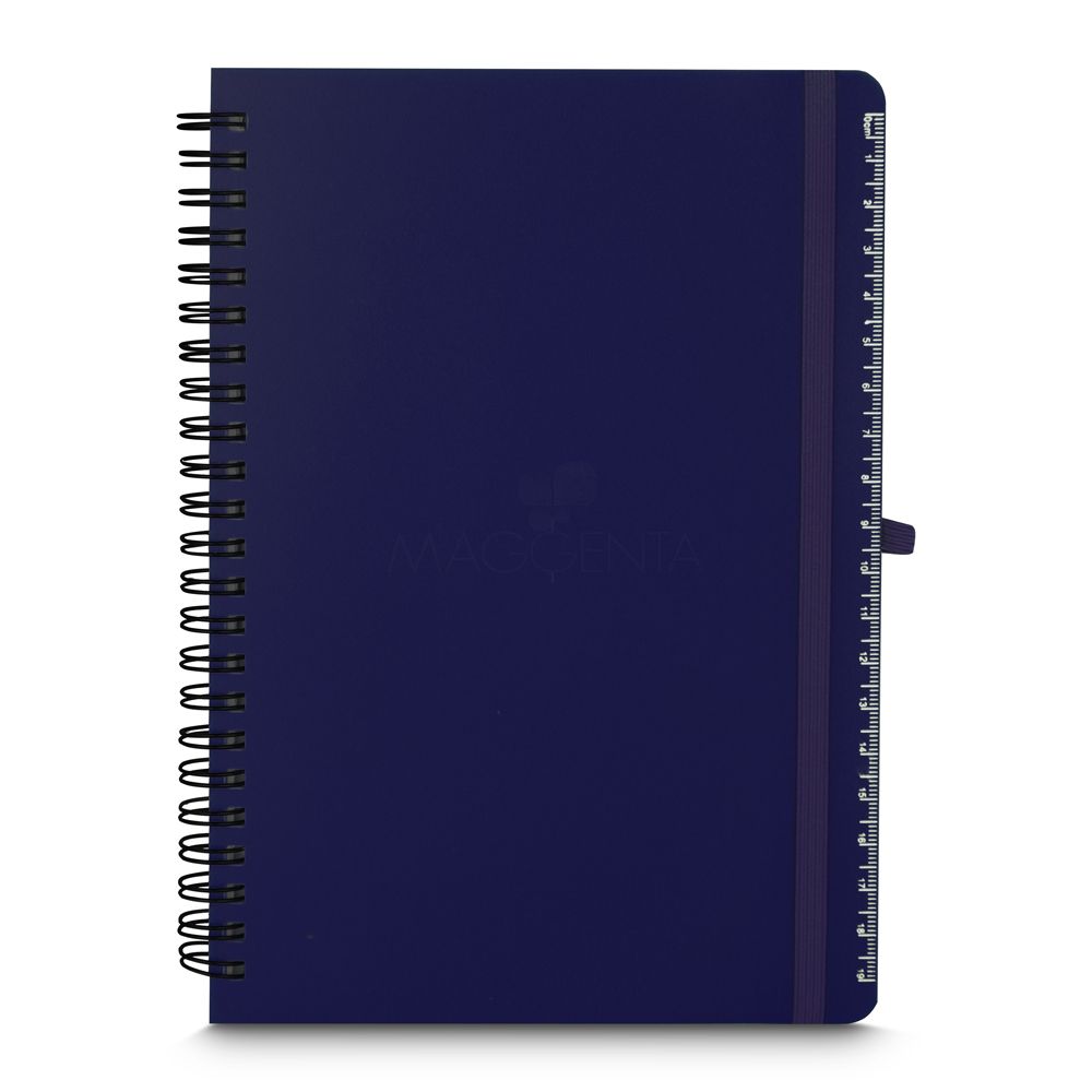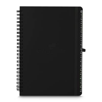 Caderno de anotações em PP(Polipropileno) reciclável com suporte para caneta e miolo de 70 folhas brancas pautadas. *Não acompanha caneta.