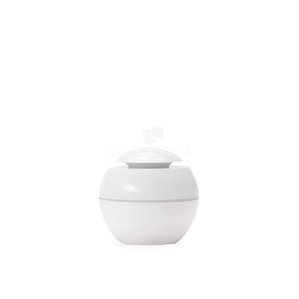 Umidificador de ar com construção em plástico, iluminação LED e reservatório de água com capacidade de até 200ml. Apresenta dois modos de névoa: contínuo e intermitente. Funciona apenas conectado a uma fonte de energia por meio de sua entrada USB-C. Acompanha filtro de algodão e cabo USB-C.