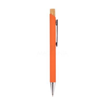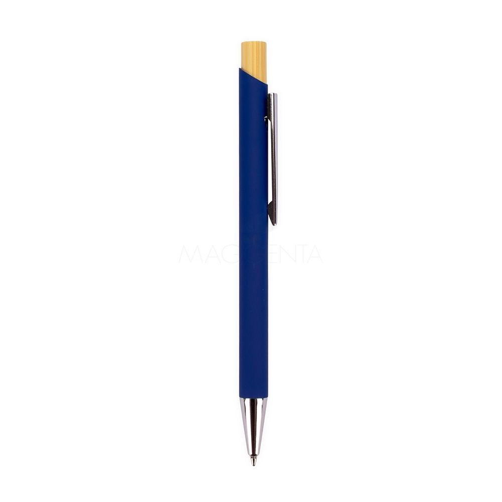 Caneta esferográfica com carga azul de 1.0mm. Possui construção metálica e acionamento por clique em bambu, o que proporciona uma pegada leve e maior precisão durante o uso.