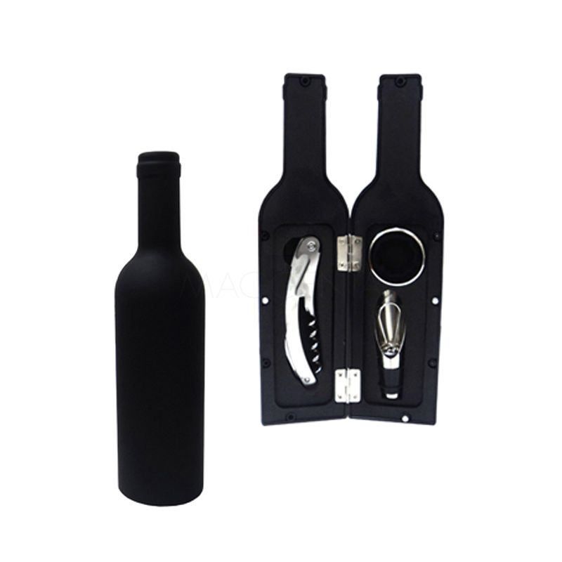Kit vinho com 3 peças, estojo de plástico resistente no formato de garrafa. Encontre aqui uma enorme variedade para Brindes.