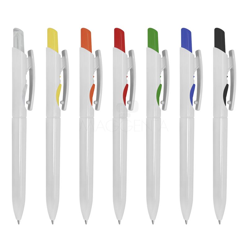Caneta plástica promocional. Personalizada com as cores de sua empresa e sua marca. É a melhor opção custo-benefício para serem entregues como brindes.