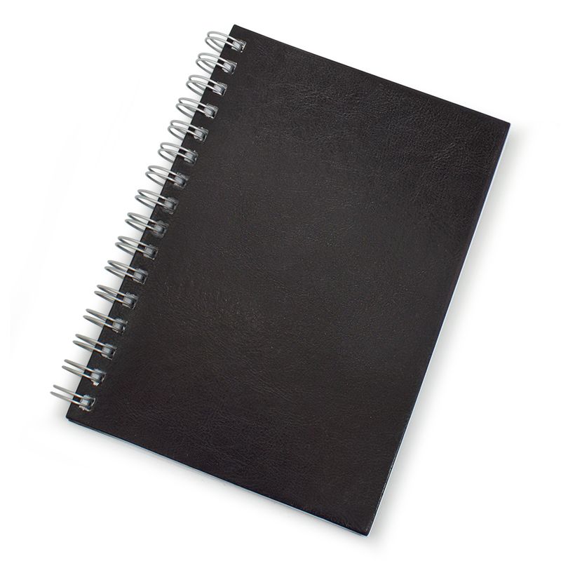 Caderno para brindes promocionais. Possui folha para dados pessoais, calendário, planejamento, marca d'água nas folhas e capa dura com acabamento texturizado nas cores Cerâmica. Azul, Verde, Preto e Marrom, disponível nos tamanhos pequeno, médio e grande. Gravações Possíveis: Hot Stamping e Baixo Relevo.
