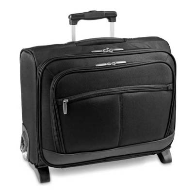 Confeccionada em couro sintético e 1680D. Possui 2 rodas, caixa rígida, compartimento par notebook 15,6", pega extensível em alumínio ( altura da pega estendida: 67,5 cm) e interior forrada e almofada. Chapa de metal 3,9 x 1,7 cm