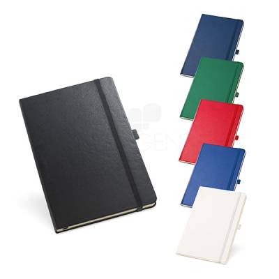 Bloco de anotações com capa dura produzida em couro sintetico, possui porta caneta, bolso interior e 80 folhas não pautadas na cor marfim.