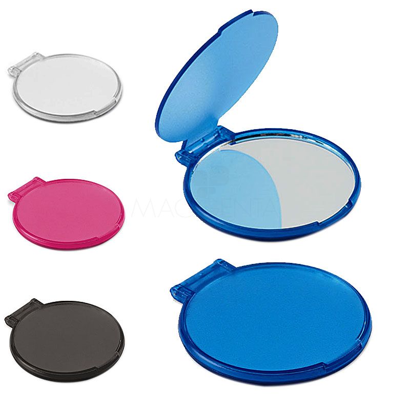 Espelho de maquiagem com formato redondo, prático e com o tamanho ideal para transportar na bolsa.