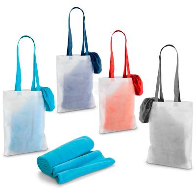Toalha de praia personalizada em veludo de algodão 320 g/m². Acompanha sacola em non-woven (80 g/m²)