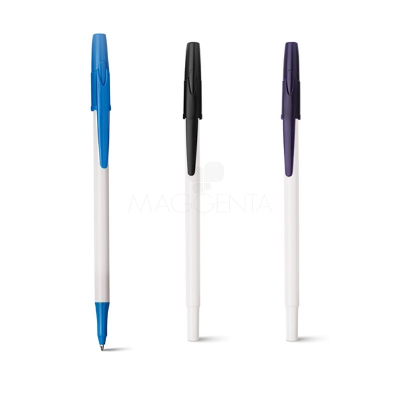 Caneta plástica produzida com acabamento brilhante, possui esferográfica na cor preta com tampa e clip personalizado.