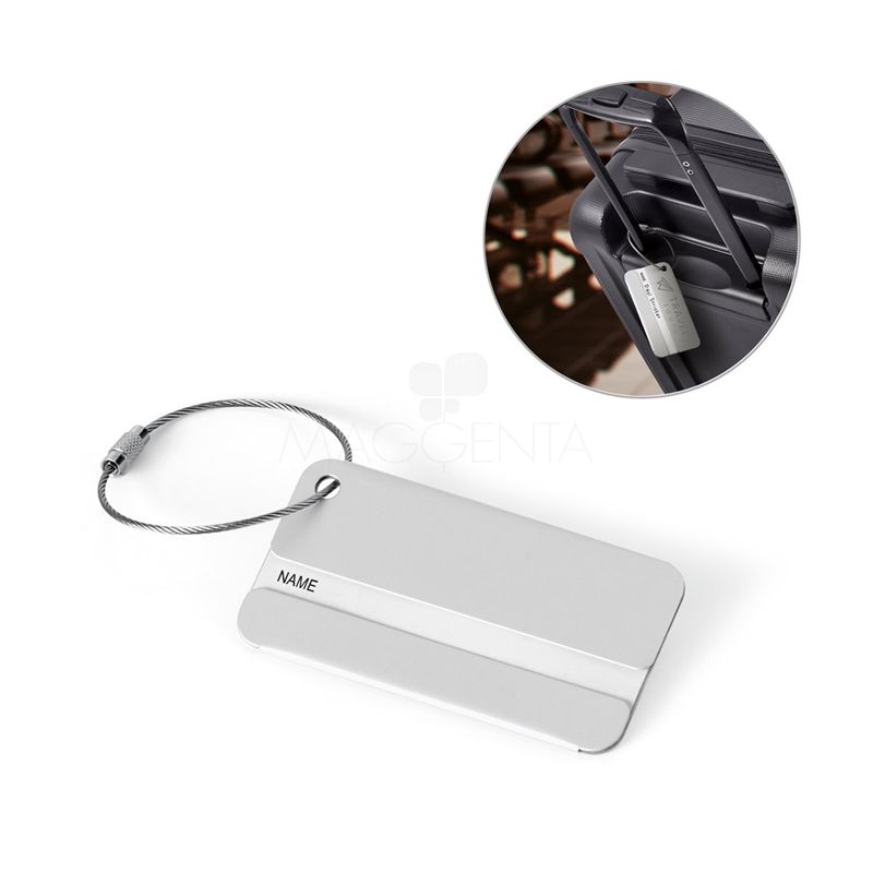 Identificador de bagagem personalizado. Material em alumínio com cordão. Ideal para brindes personalizado, empresas voltada ao turismo, viagens e eventos corporativos.