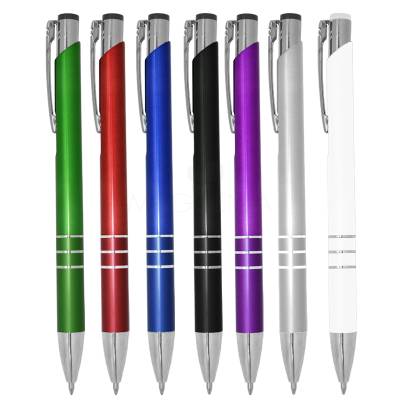 Brinde Caneta de Plástico com click injetada com corpo coloridos e detalhe em prata. Consultar as cores